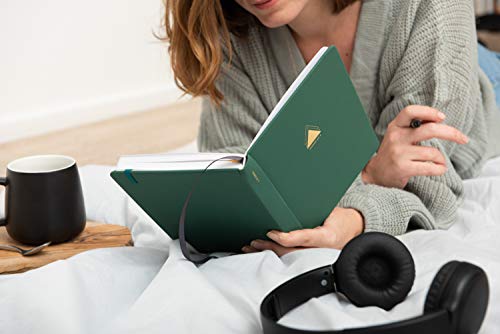 - HARDCOVER VEGAN LEATHER NOTEBOOK - Available in three colours inspired by nature, this monthly planner comes with a stain-resistant vegan leather cover with gold foil debossed emblem, 120 GSM pure white paper, and lay-flat binding.